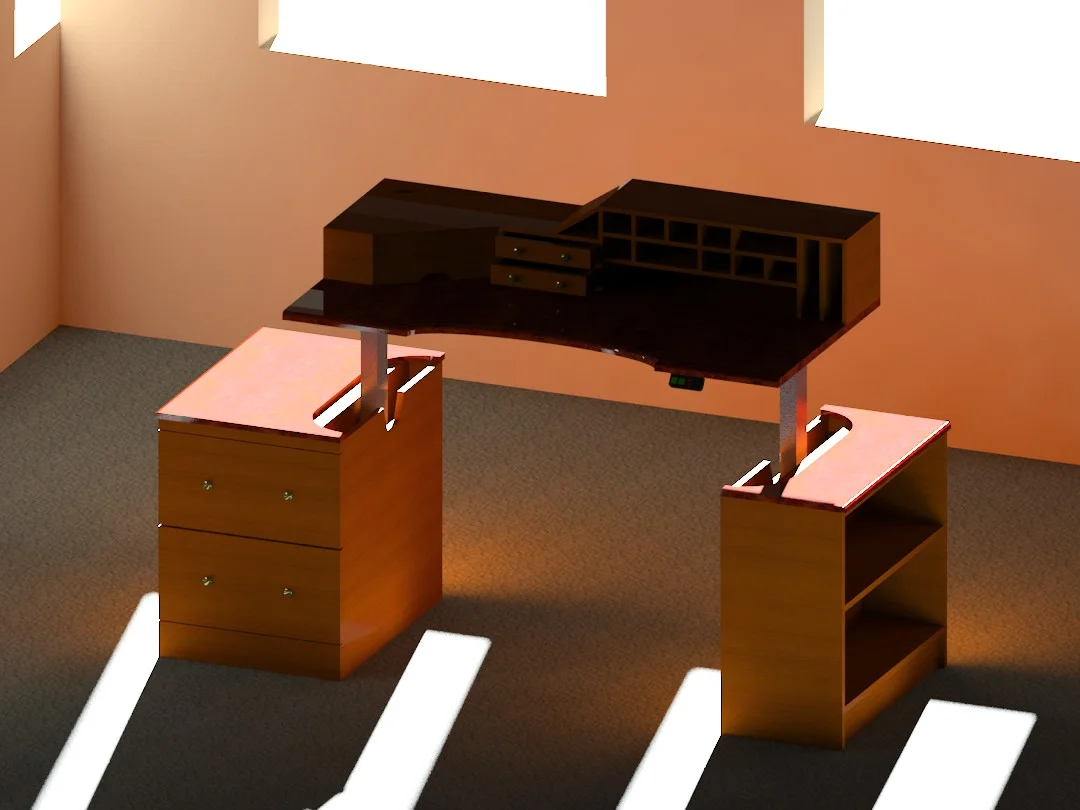One of the final rendering of the project. This rending was chosen to lighting effects on the finished desk. It showcases the profile of the desk rather than the details.
